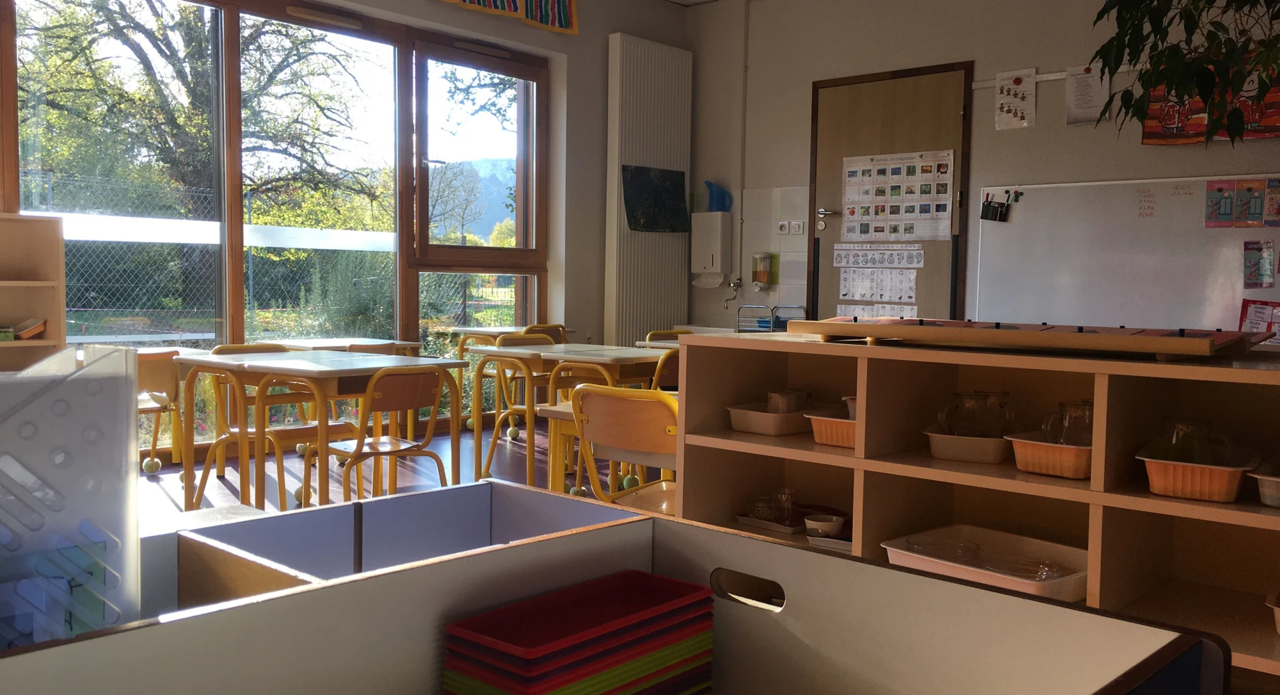 Elle dispose aujourd’hui de 4 salles de classe, une salle de sieste pour les petits, une salle de motricité et deux cours de récréation.